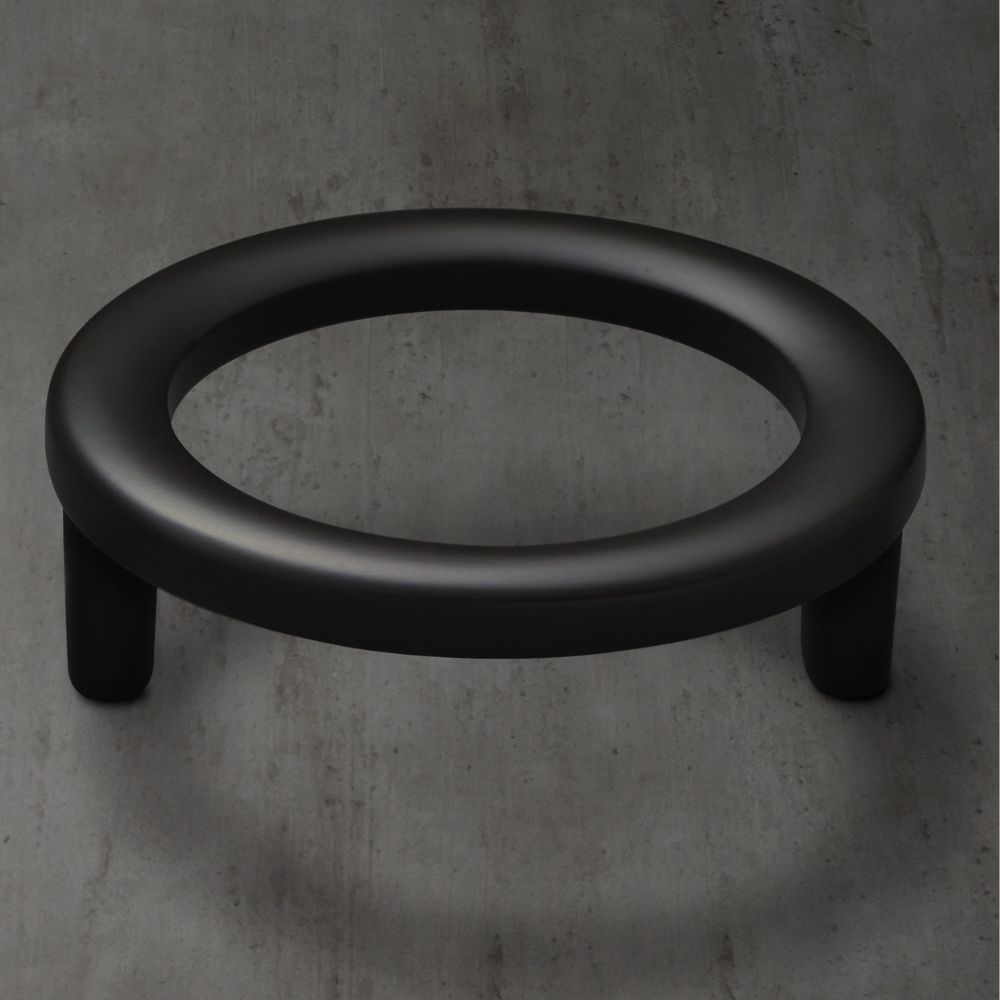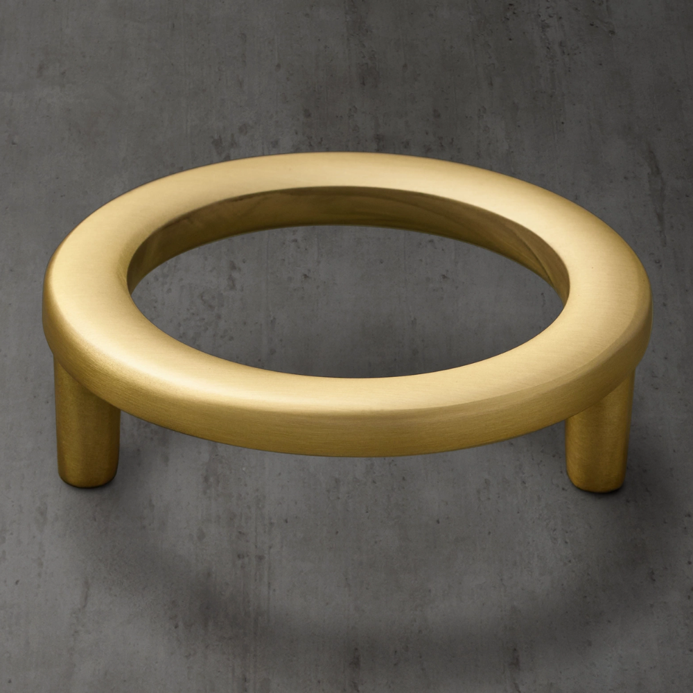 Striking in its simplicity, our brass pull by Ian Fowler feels at once classical and modern. The bold, circular design rests atop minimalist posts that lend it the look of floating. An intriguing interplay between positive and negative space completes the artful aesthetic.