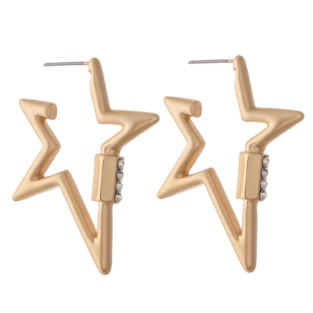Star Rhinestone Carabiner Hoop Earrings in a Matte Finish.- Approximately 1.5" L