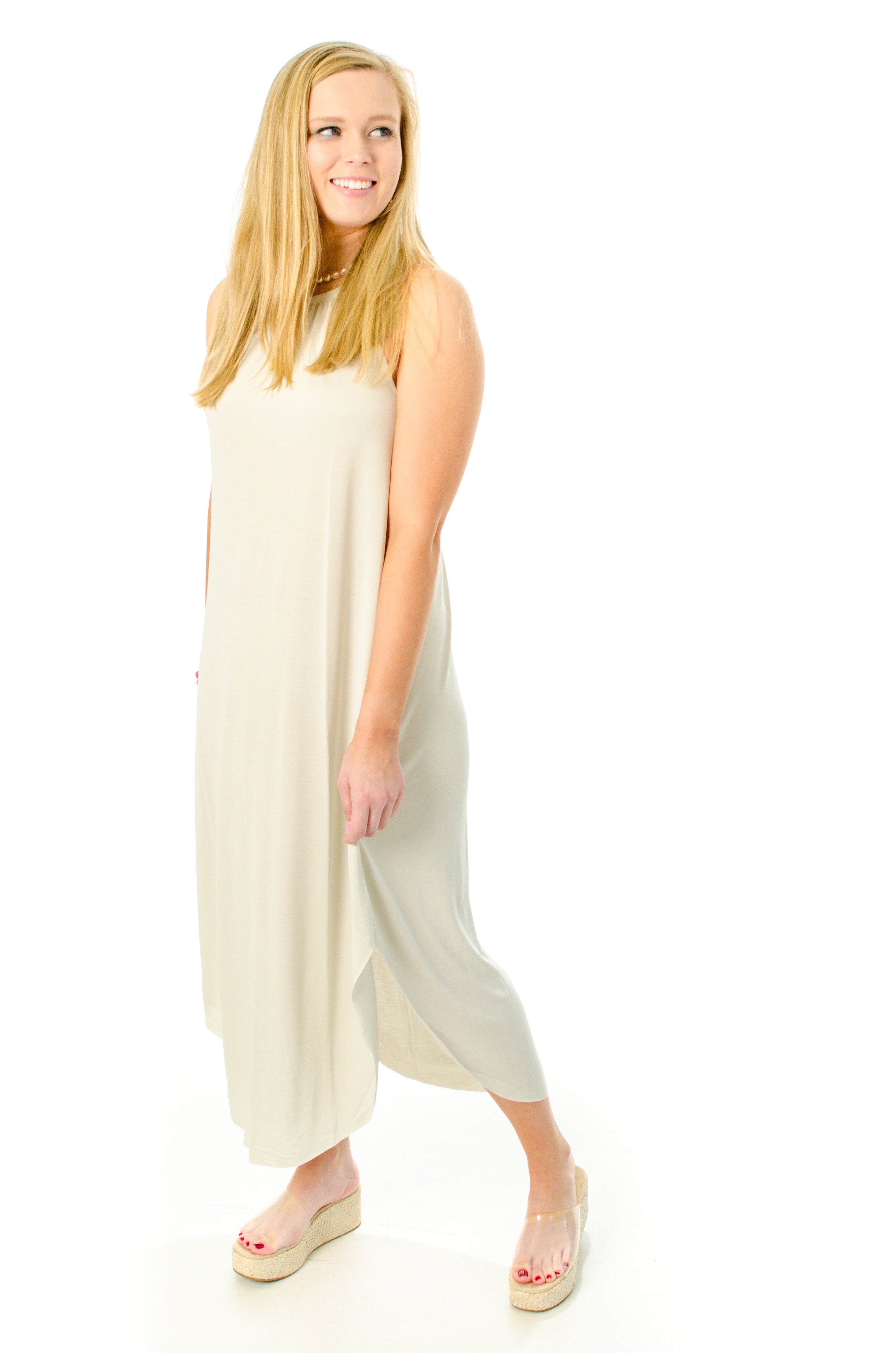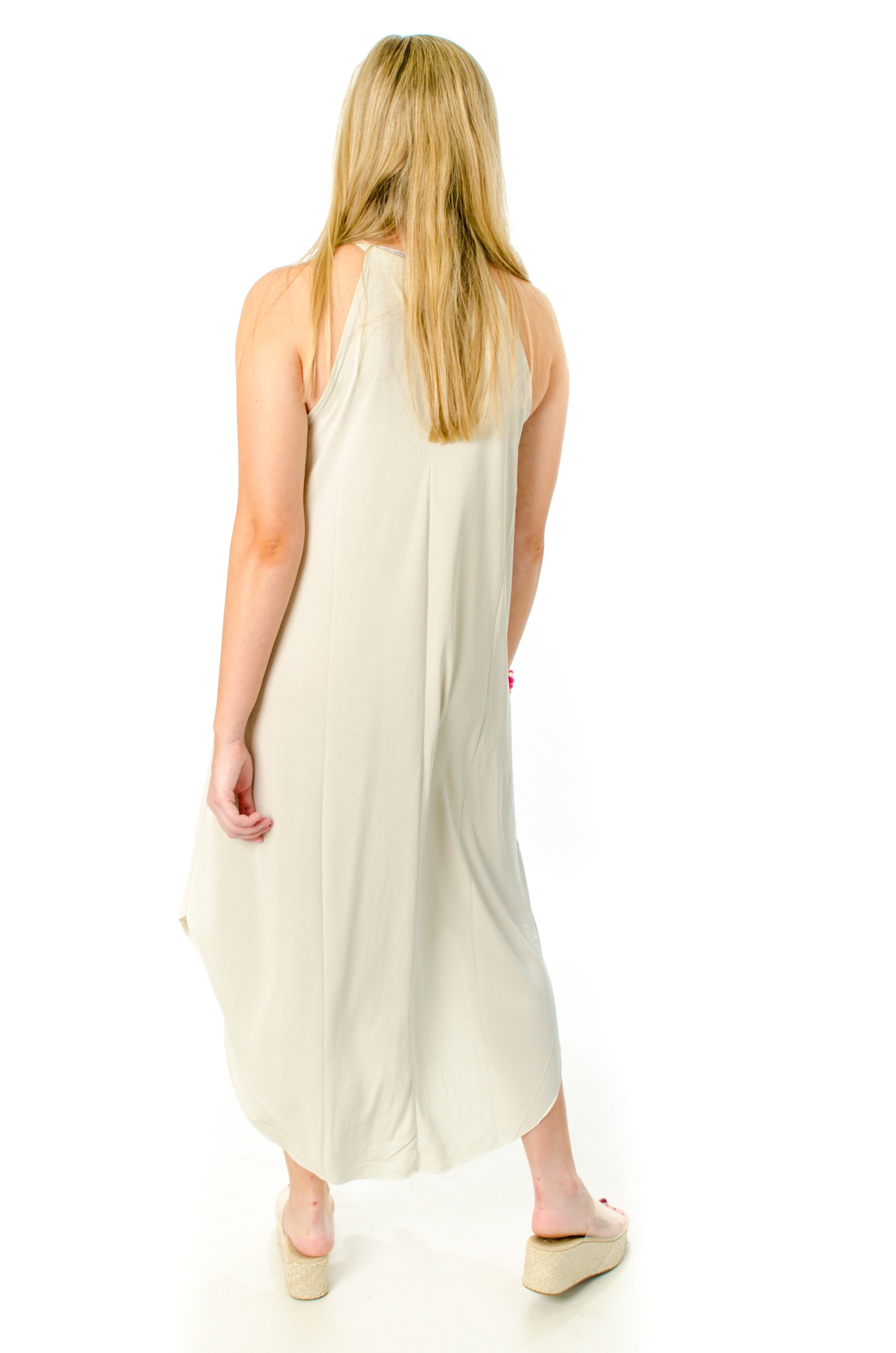 L Mae’s Come Away With Me Maxi is a timeless carefree look! Take us away on a style adventure! This dress is lightweight and can be dressed up or down. Featuring a halter style neckline and loose fit. Add accessories to dress up this piece or keep it casual! Available in Pearl Grey, Sage Green, Smoke Blue, and Teal.