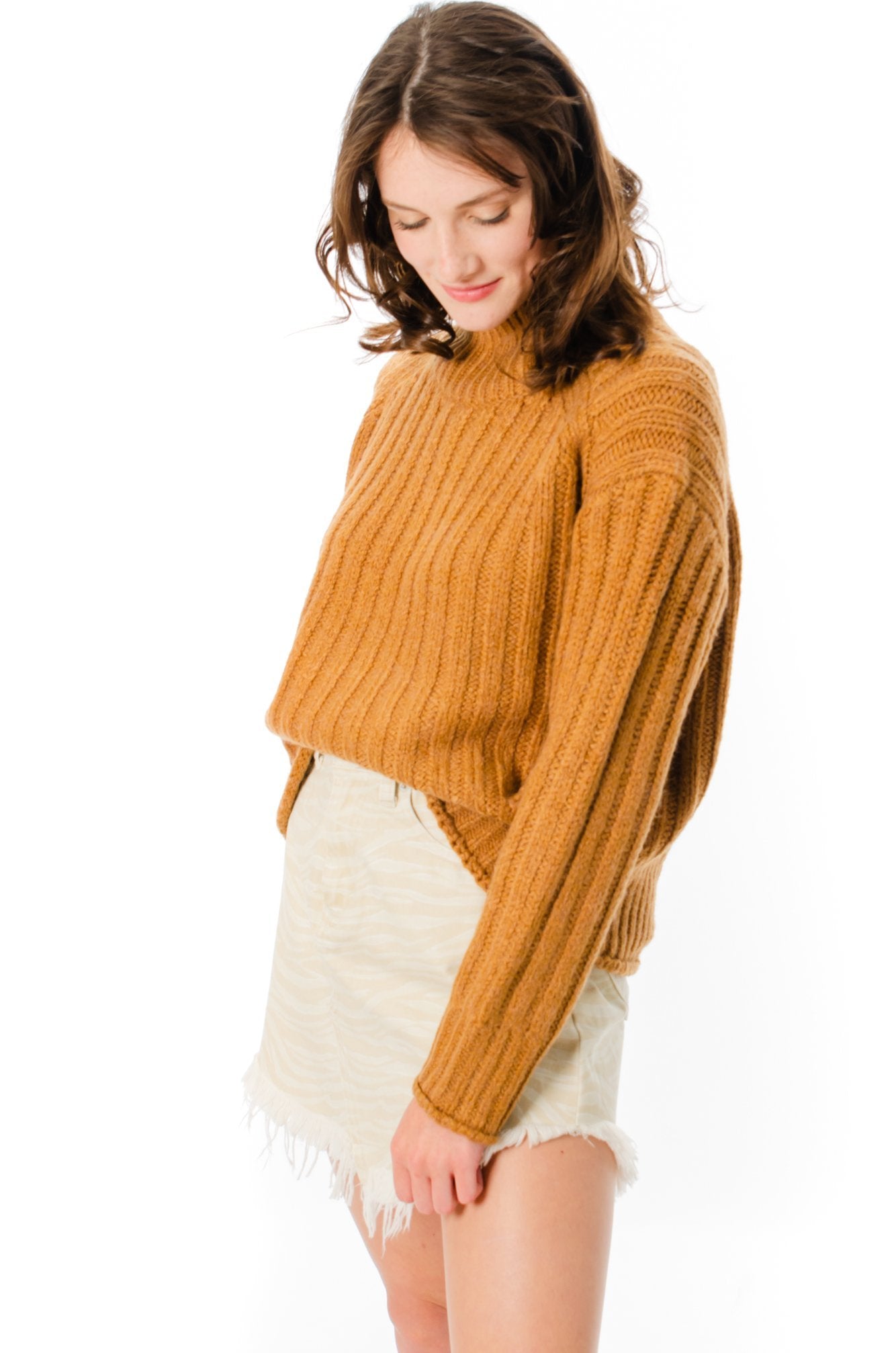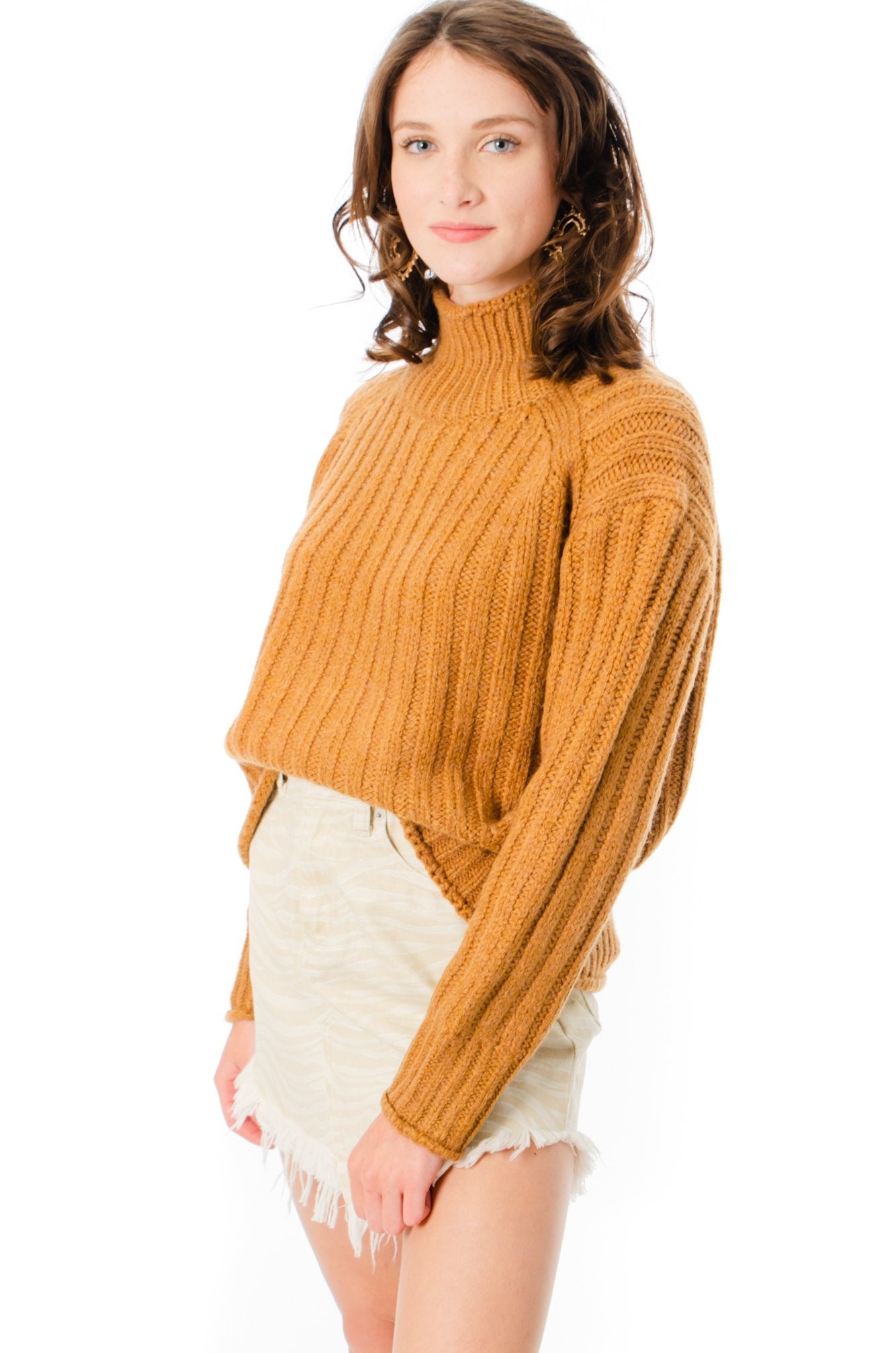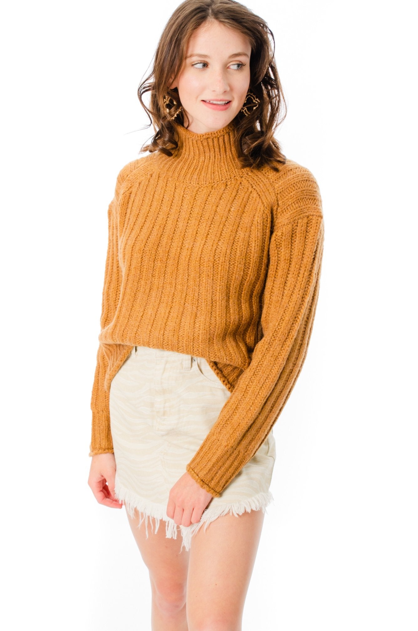 The Kut Camel Mock Neck Sweater will keep you cute and cozy day or night! This super cozy mock neck sweater features a chunky ribbed knit material, drop shoulders, and long sleeves. Pair it with your favorite dark-washed jeans and some booties for a festive look!