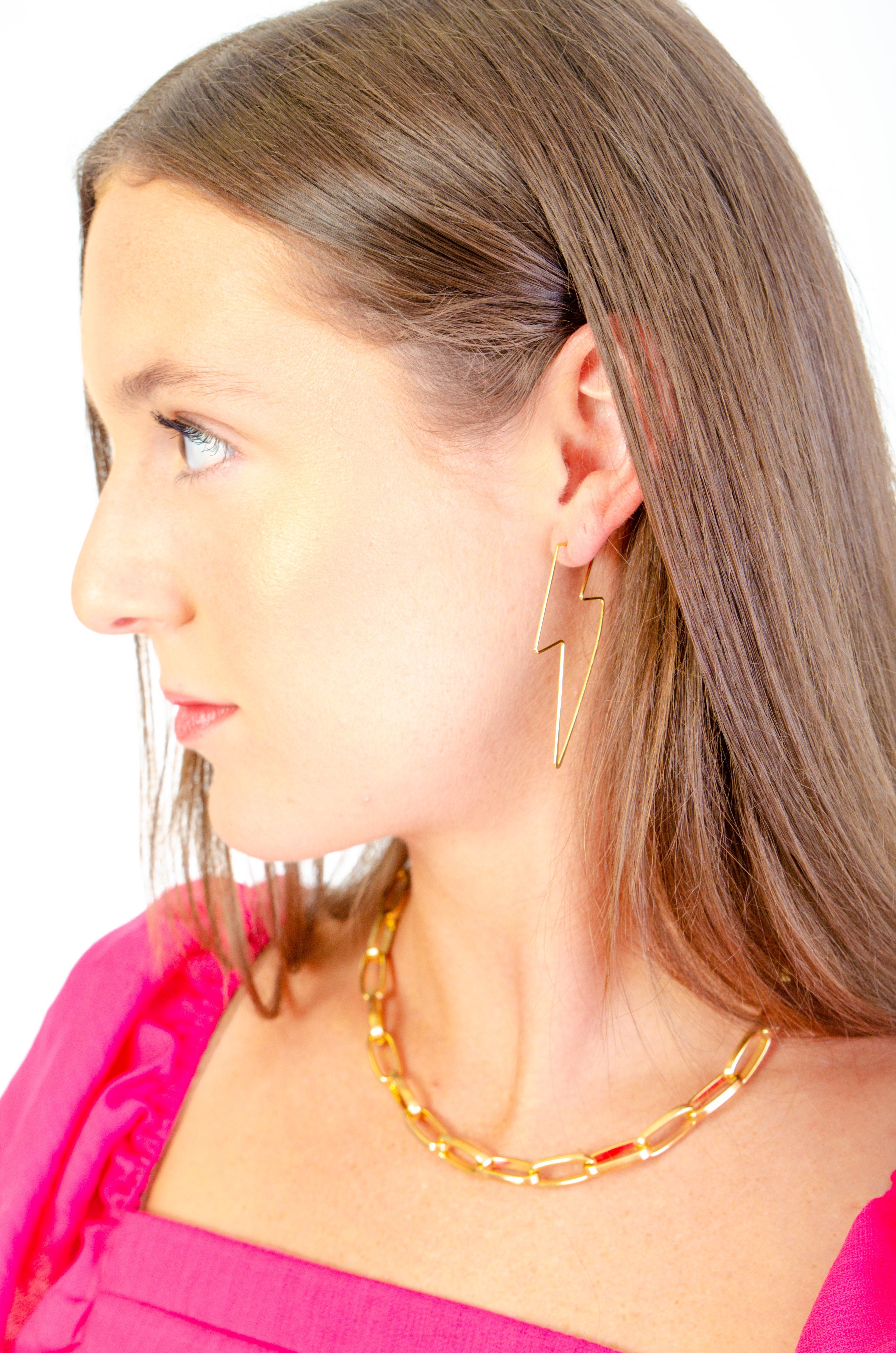 These earrings will strike you down with how cute they are! These gold lightning bolt earrings are a thin, lightweight earring great to add to any outfit! Pair these earrings with a cute graphic tee and our white tennis skort!