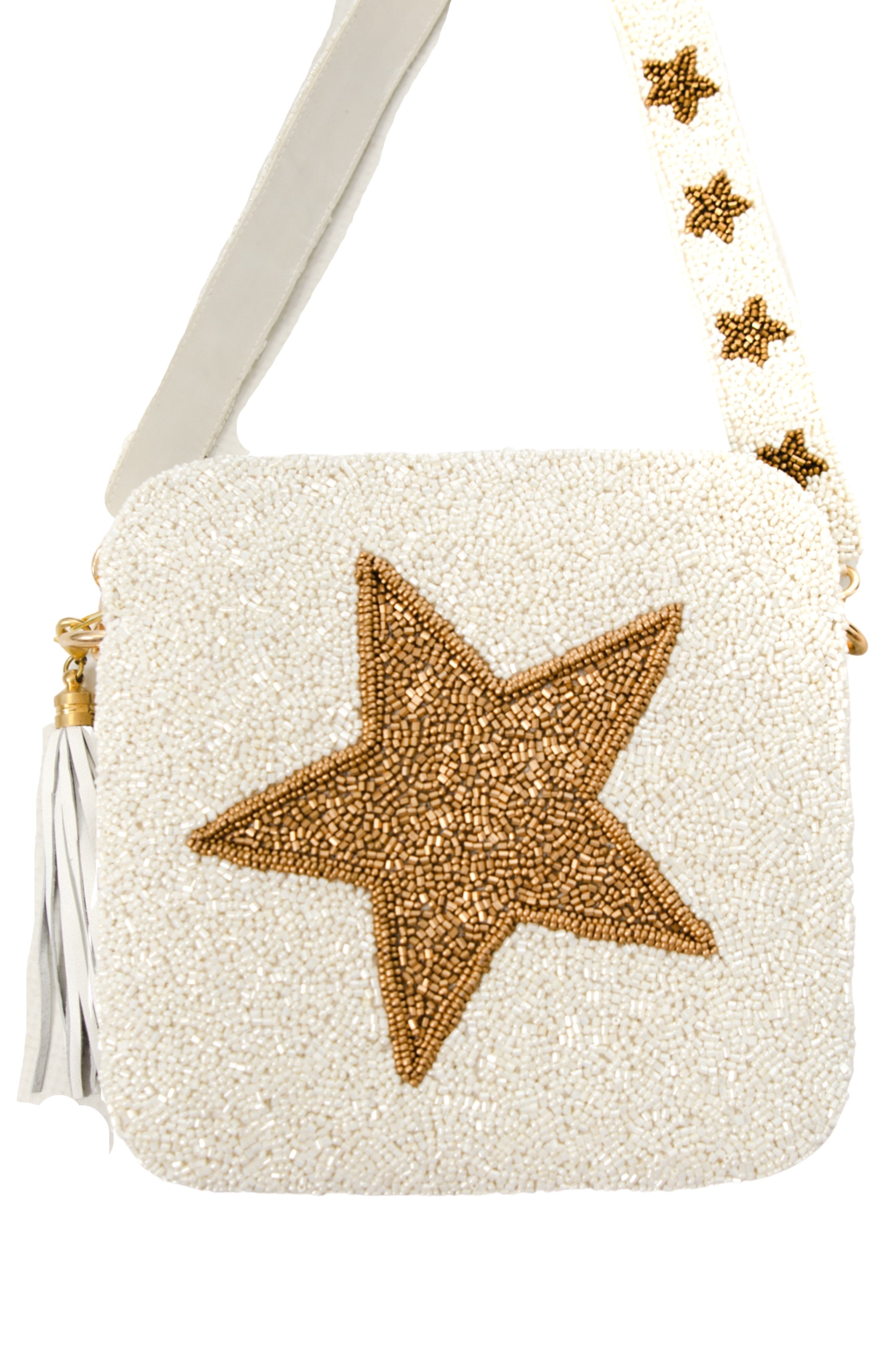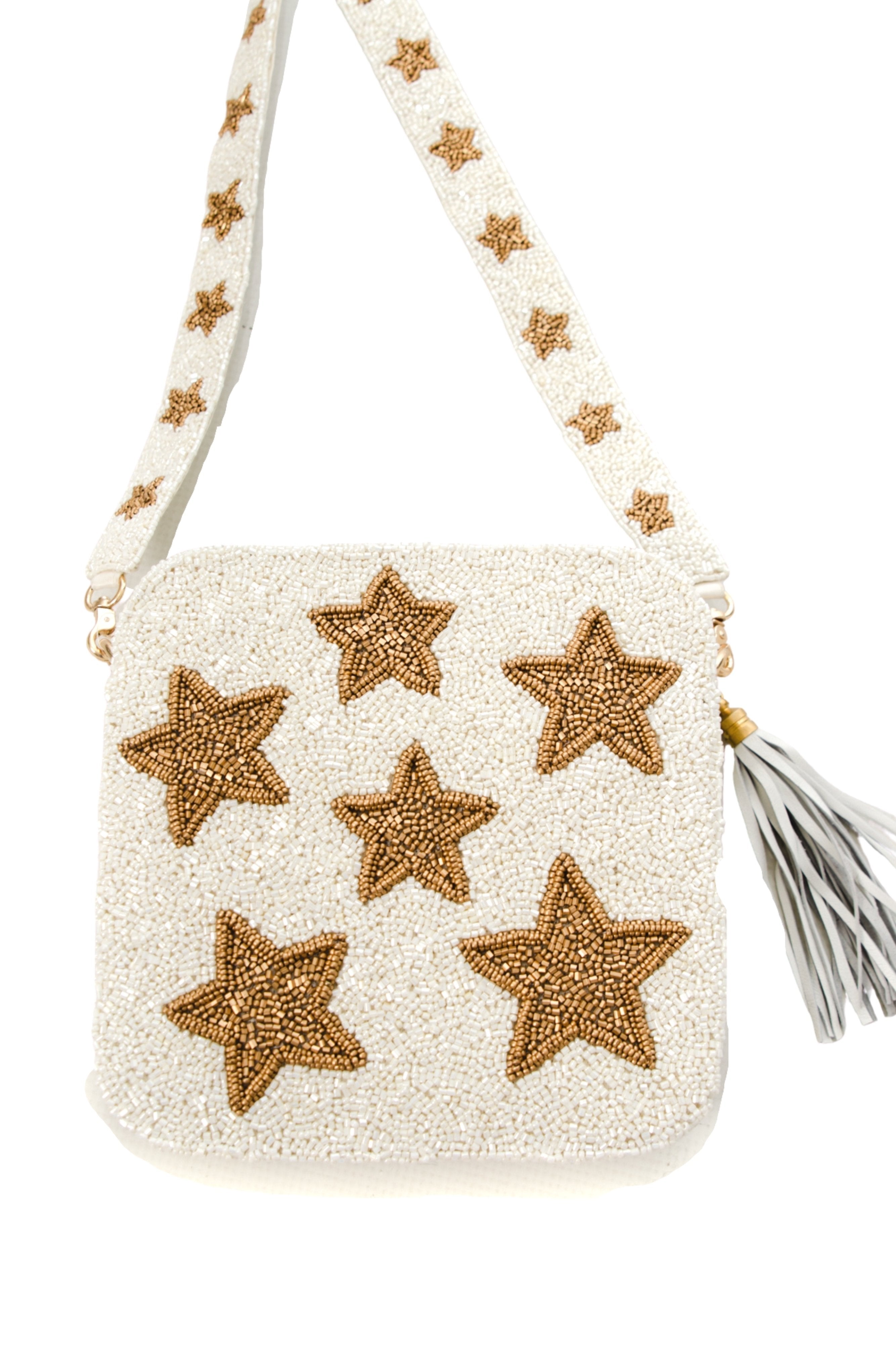 Gold and White Star Beaded Bag | Custom Beaded Cross Body Bag