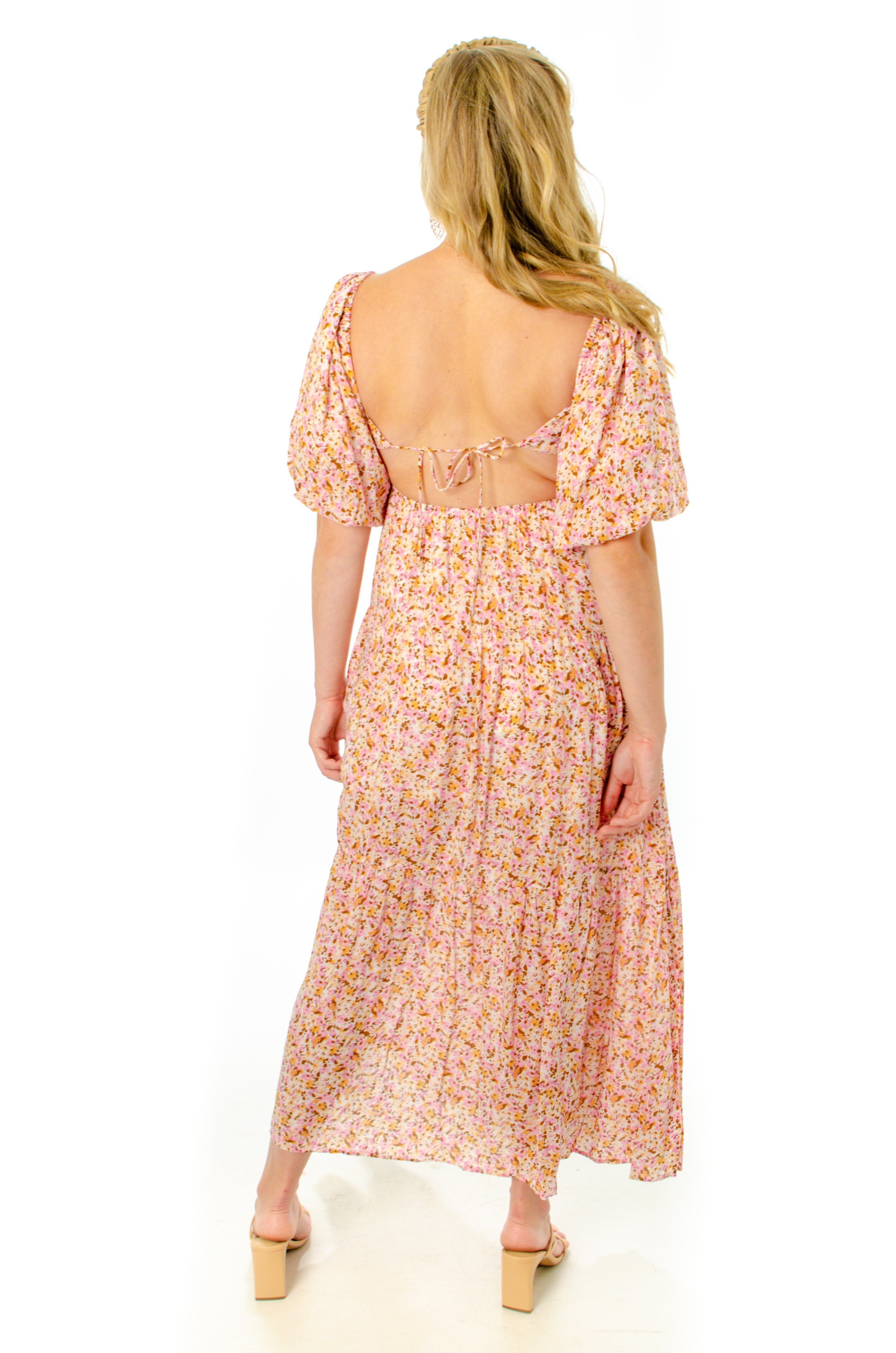 Give love a second chance when you step out wearing Delphine. This breathtaking midi dress is exactly what you need for this summer's romance. Midi dress features a square neckline that gives way to an elastic empire waist. Dress is tied at back creating a cut-out silhouette.