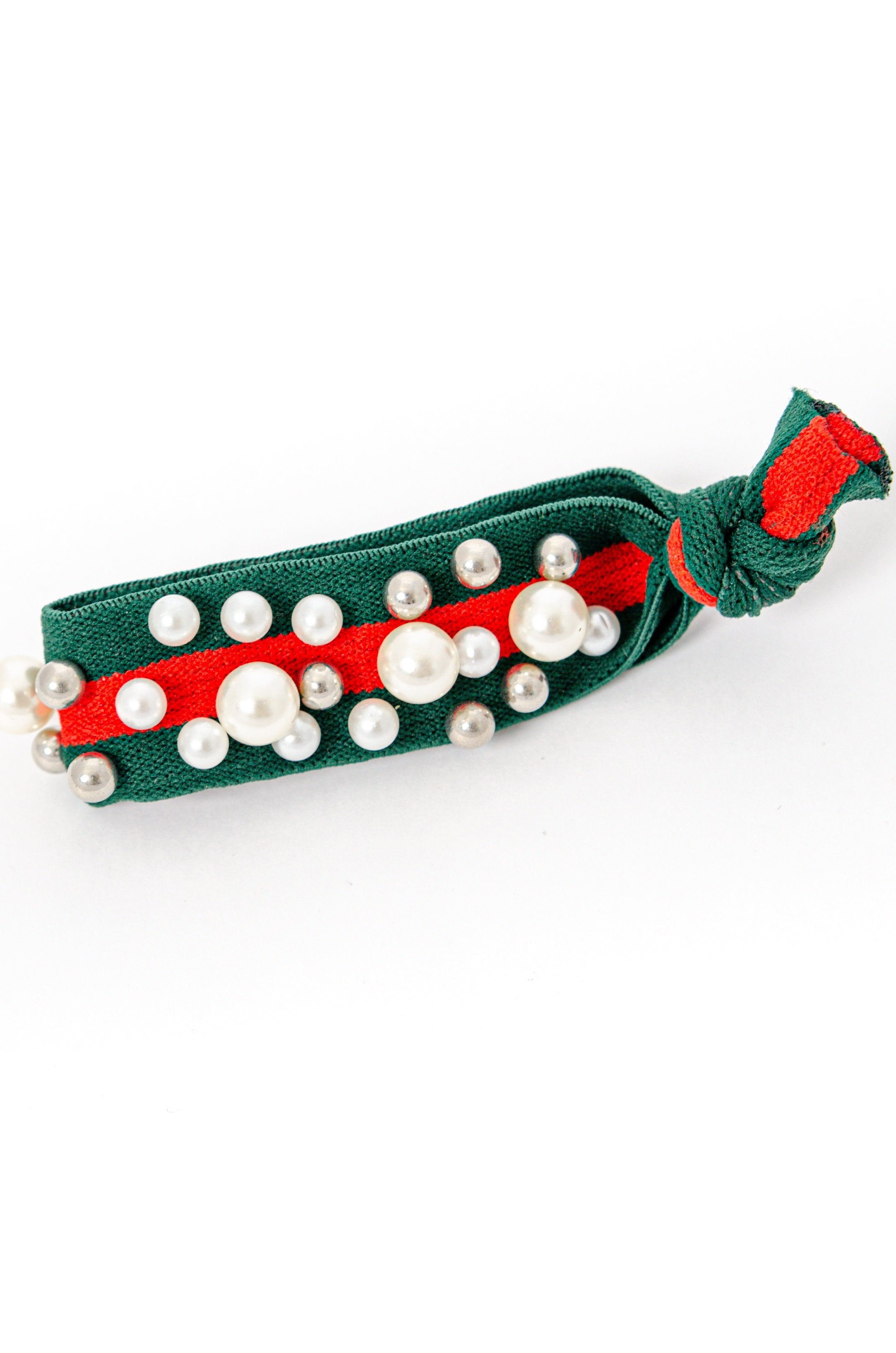 Embellished  Red + Green Stripe Hair Tie |  L Mae Boutique