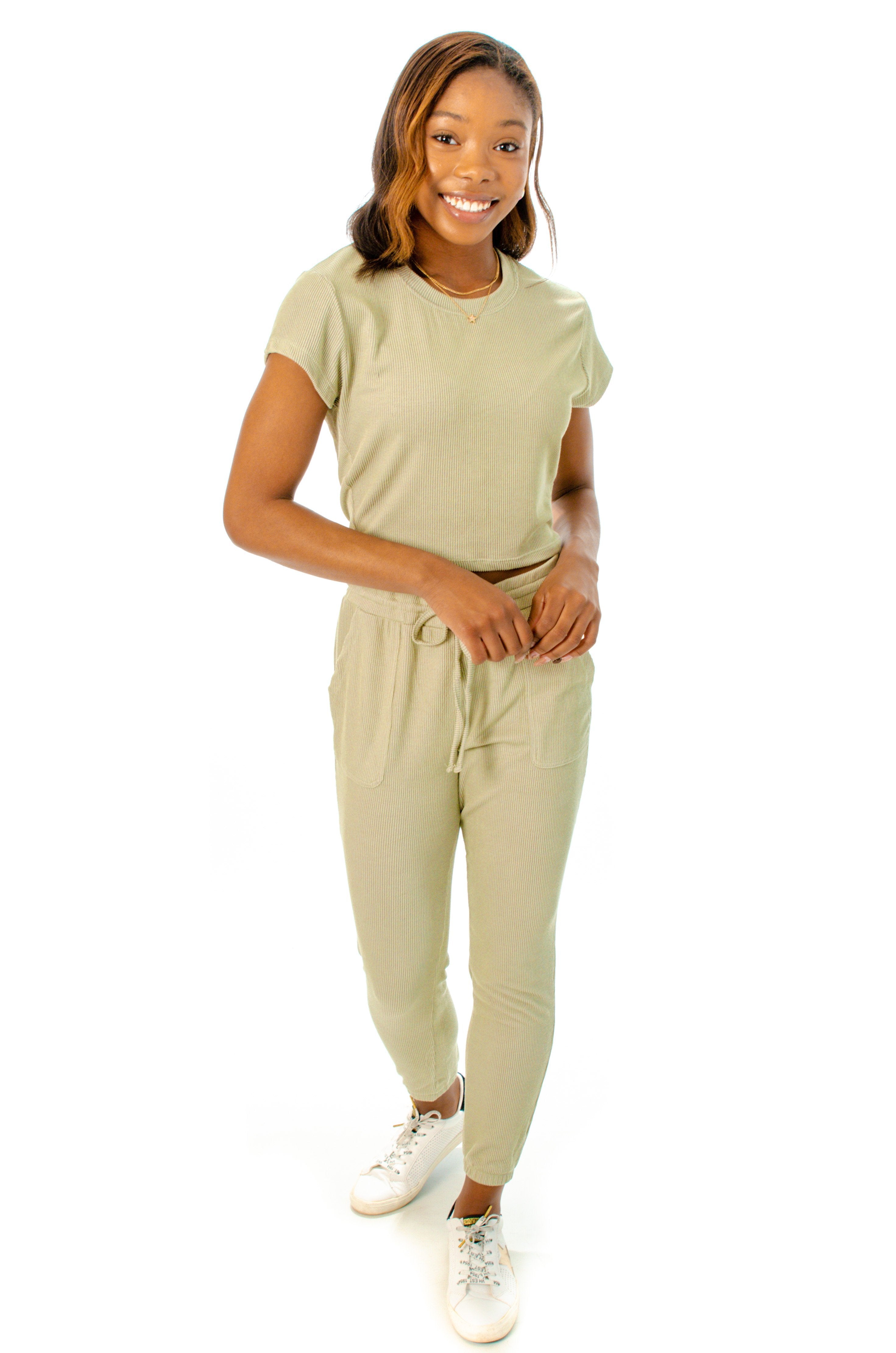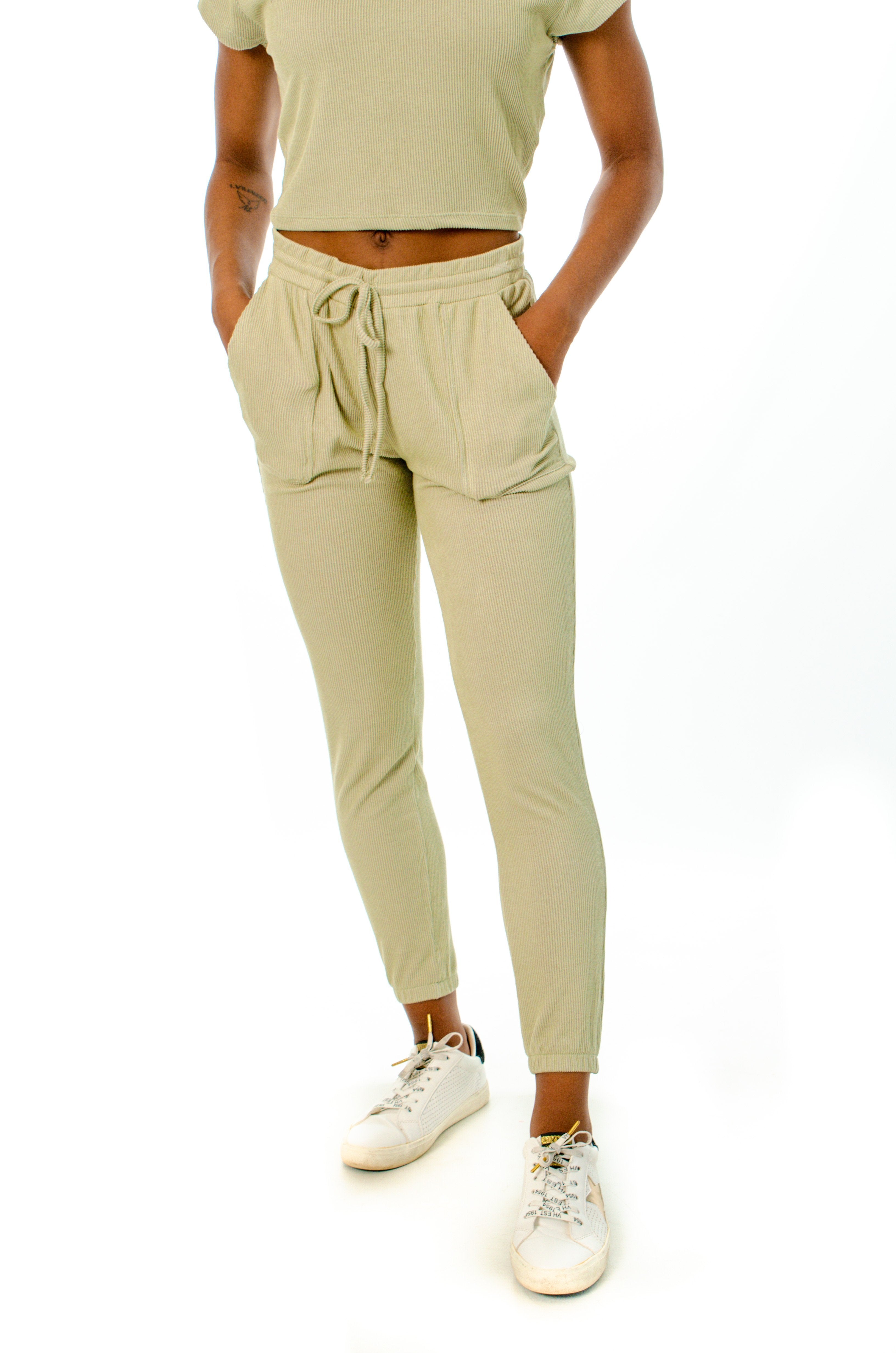 You can never own too many comfy pants, right?! These Olive Ribbed Joggers are a soft and lightweight material. Pair them with graphics, tanks, or with the matching olive top!