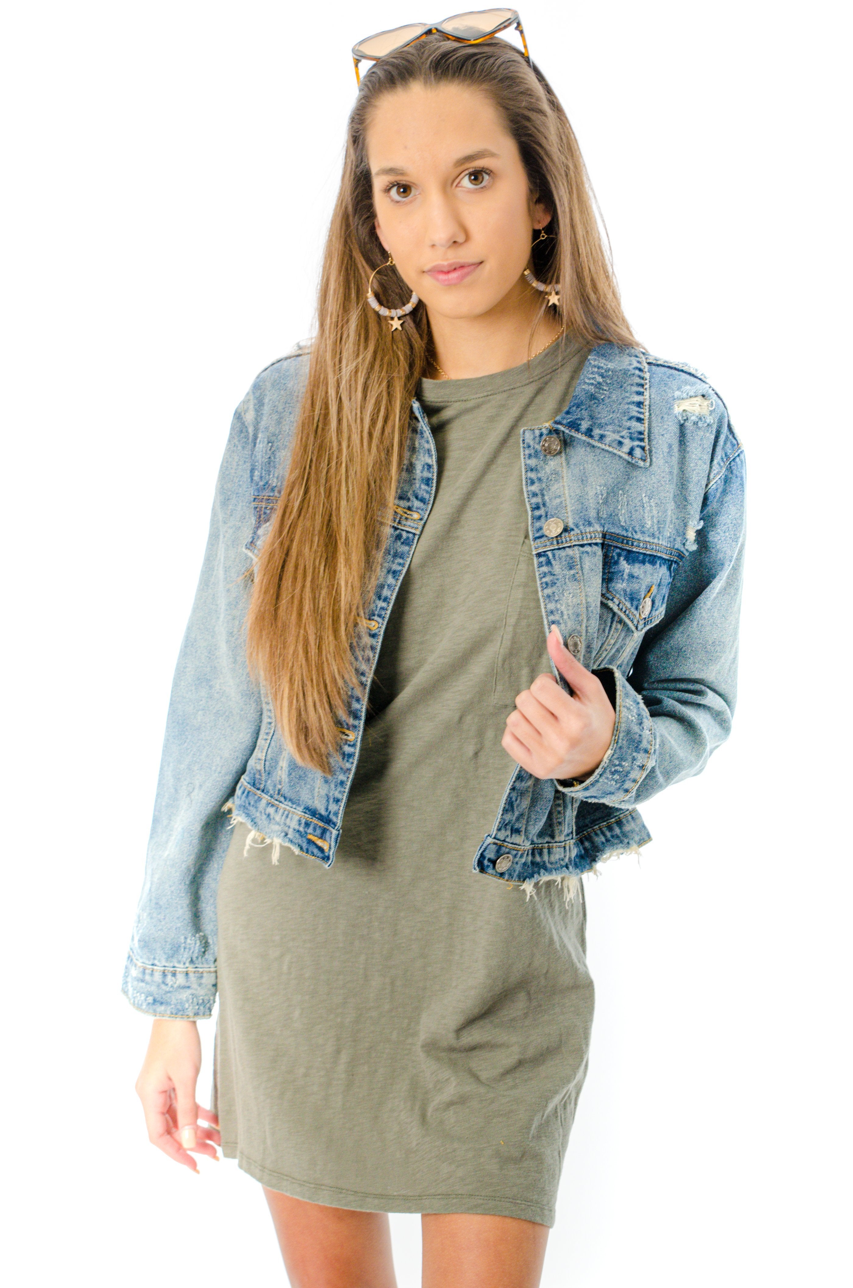 Raw Hem Denim Jacket | Cropped Blue Denim Jacket | Wild Mabel Clothing