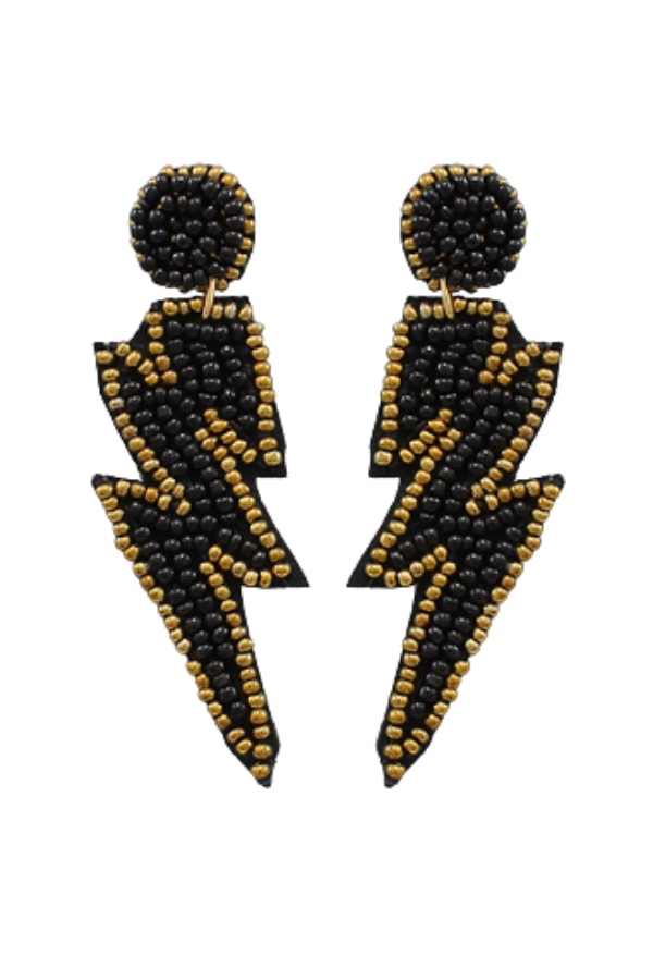 These statement lighting bolt beaded earrings are the perfect pair to take your look to the next level! With a lightweight feel and the gold beads outlining the earring you'll be sure to stand out! These earrings are a pair for any occasion that you want to stand out at!