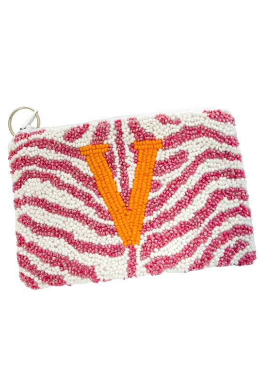 Calling all tiger lovers! This Beaded tiger coin pouch is completely customizable. measuring 4x3 with a zipper closure and key ring on top. This purple, white and orange beaded purse is great to keep the necessities in when you need to stay hands free!
