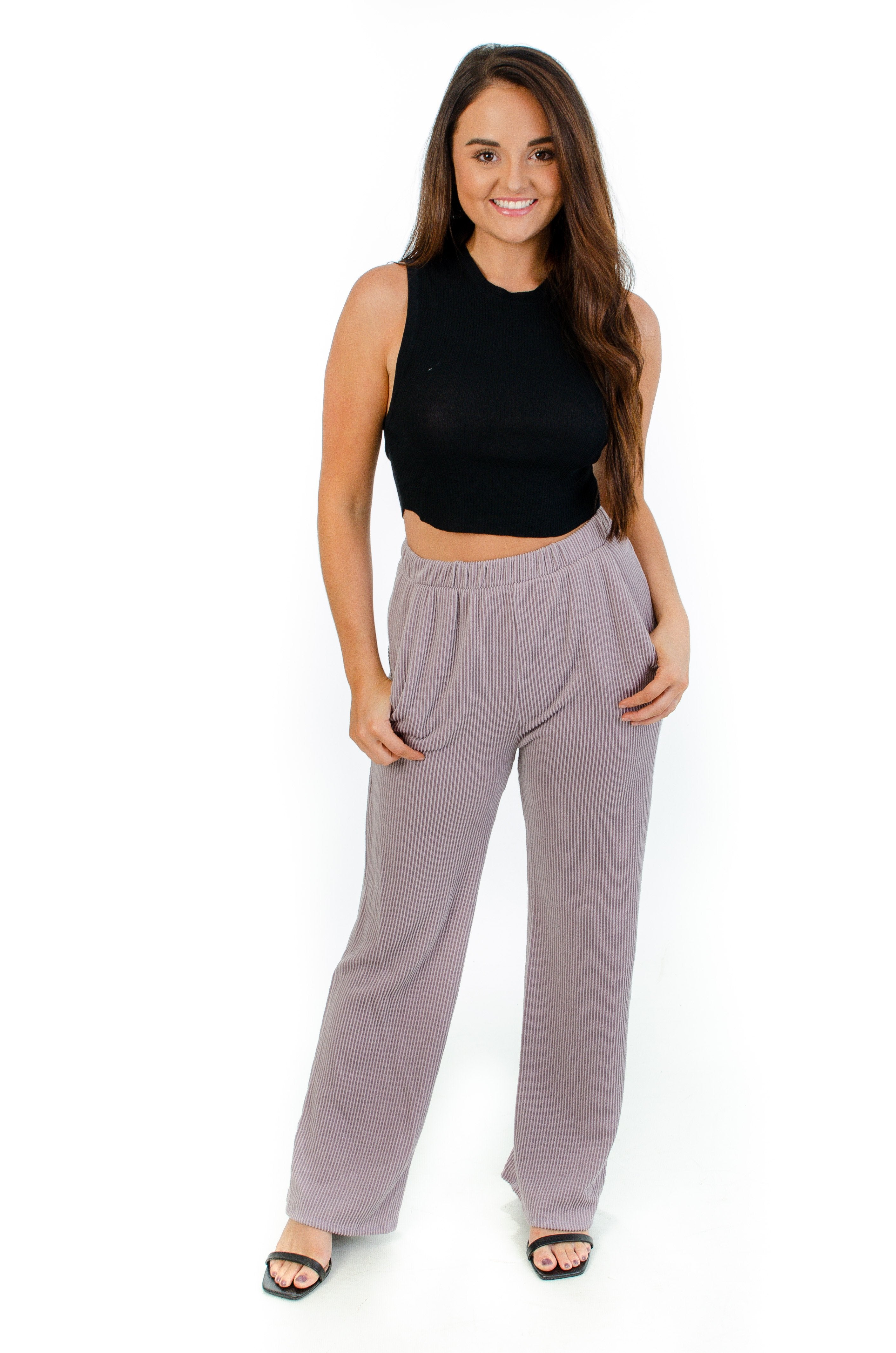 Wild Mabel's Down to Earth Marsala Ribbed Wide Leg Pants are a comfortable statement! Featuring a high waisted fit with an elastic waist. These pants have a soft ribbed texture that can be dressed up or down. Style them with graphics or with a solid blouse!
