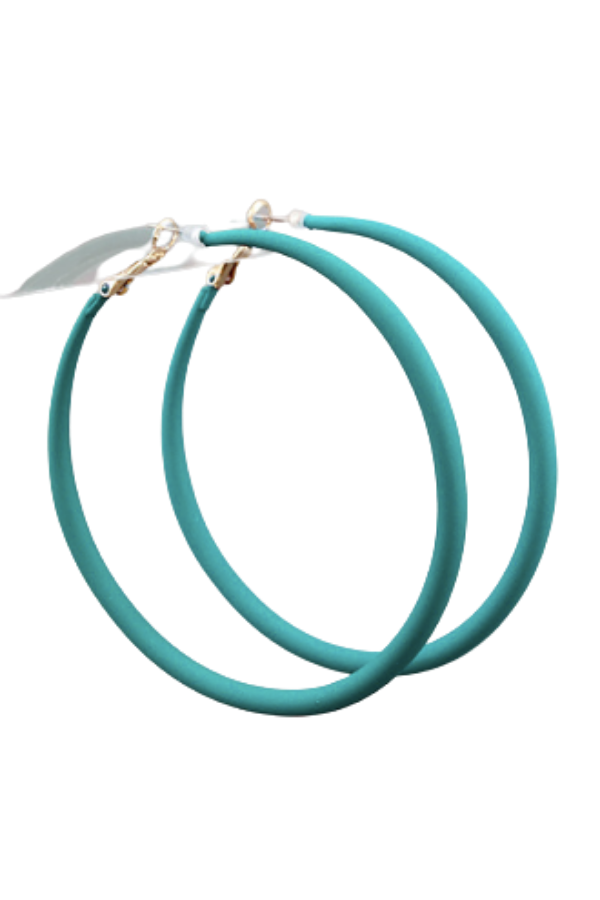 L Mae. Boutique's Around Town Coated Hoops have just the right amount of statement to them! These hoop earrings are lightweight but noticeable, meaning you can wear them comfortably all around town! Featuring a hinge closure and epoxy coating. These Earrings are 2 3/4" in length. Available in Garnet, Teal, and Orange. Perfect for game day and a great go to!