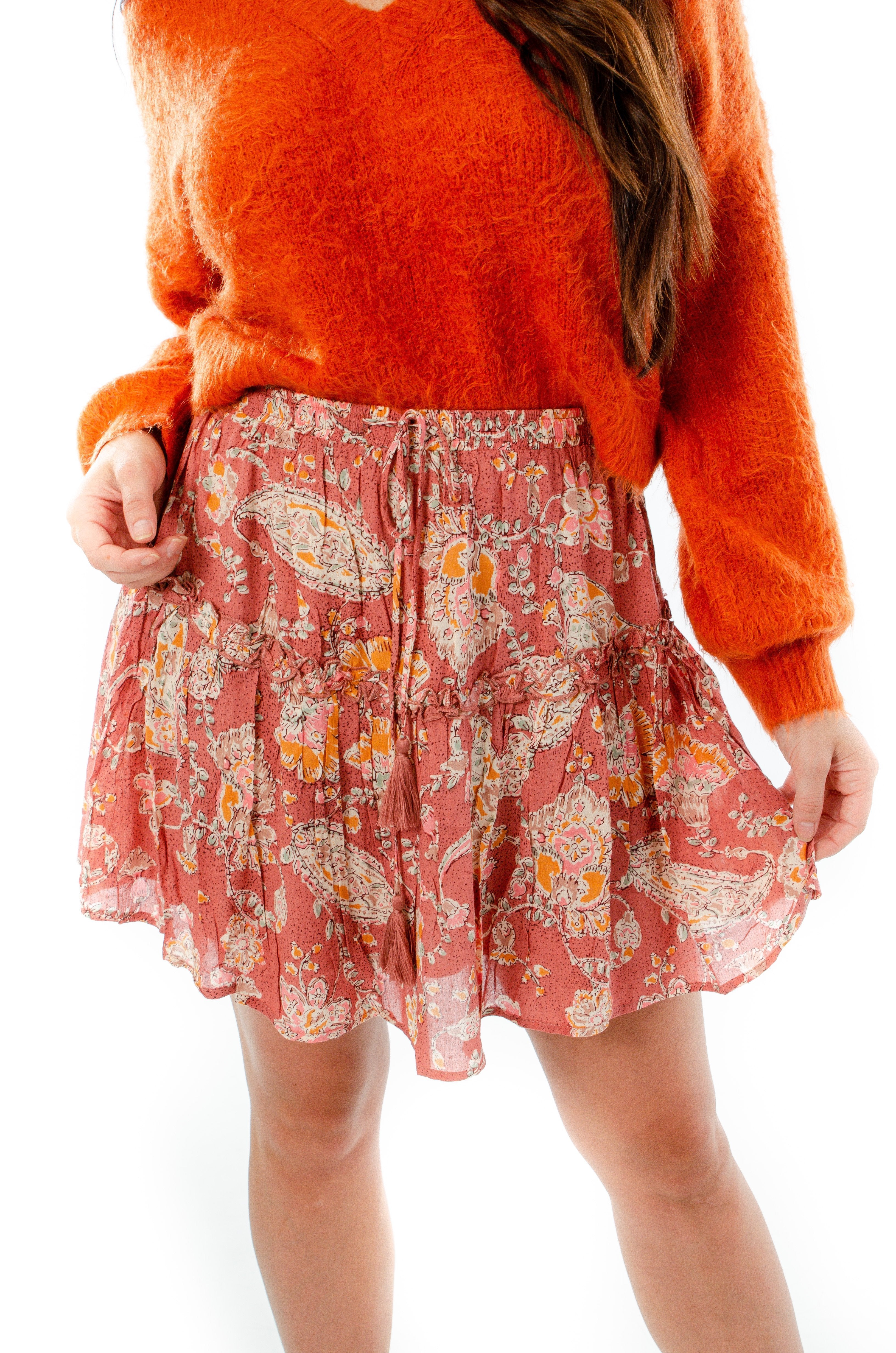 Wild Mabel's It's In The Details Paisley Skirt will have everyone asking all about your outfit details. Tell them this! Lightweight and airy, this rust-colored skirt features a drawstring tie, a high waist, and a ruffle accented center. We love this beauty paired with a cropped sweater and some booties, giving us all the fall feels!