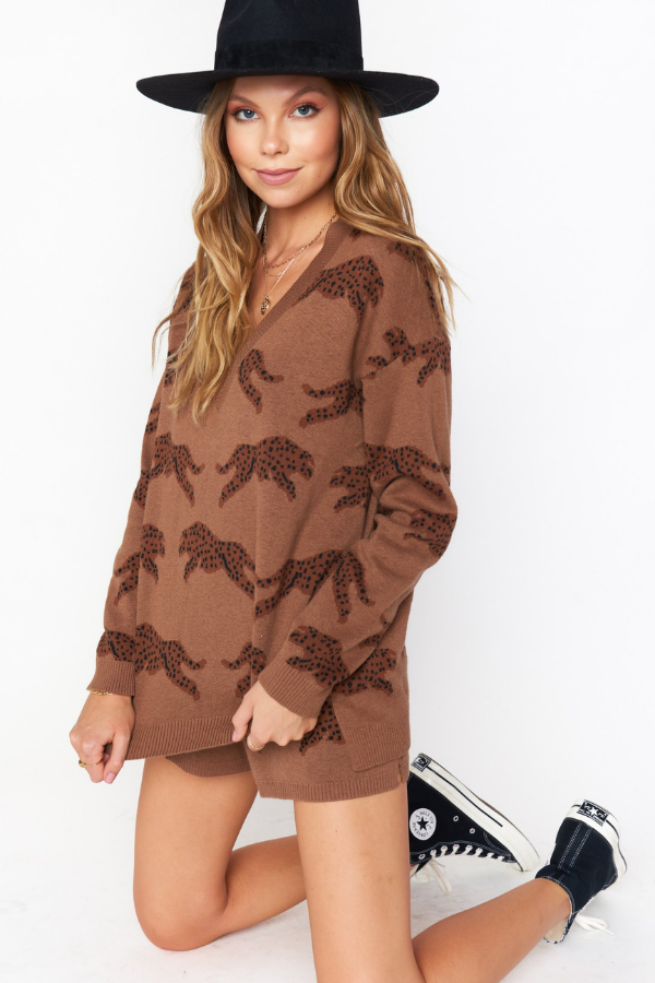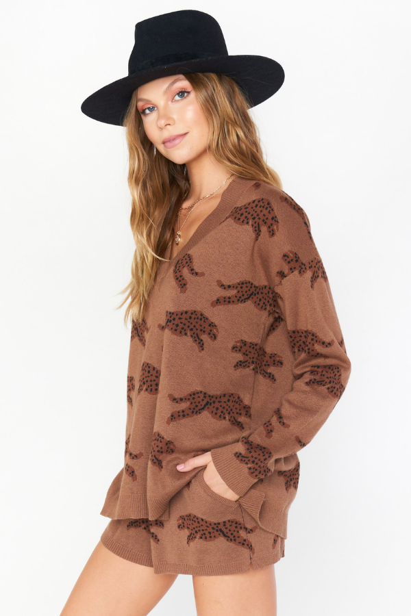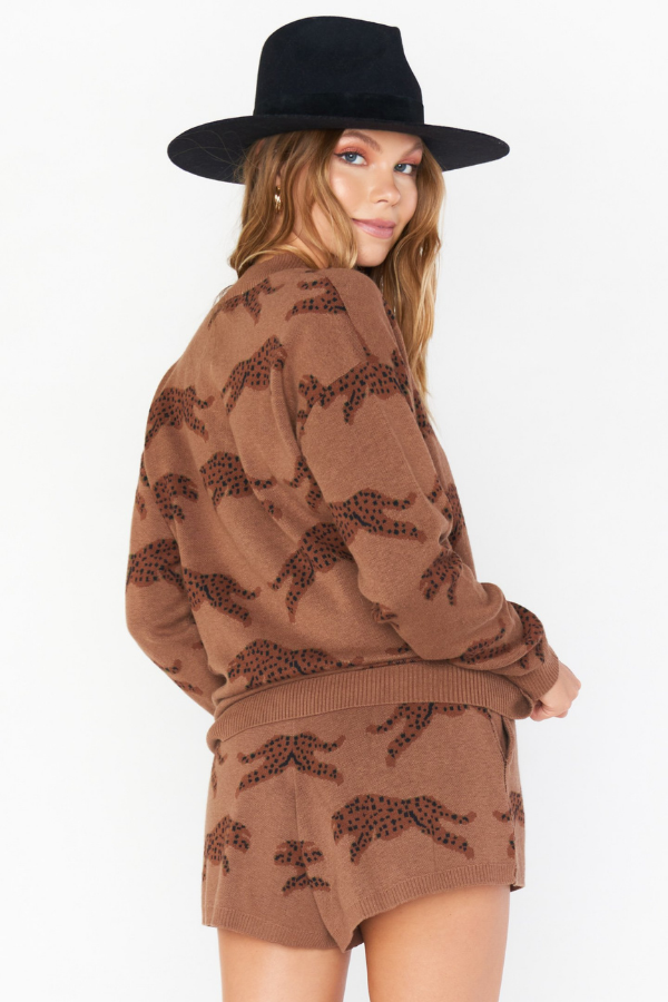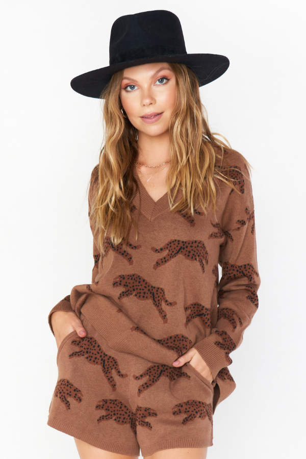 Perfect for a lounge day, the boardwalk shorts are all about comfort and style! With an easy elastic waistband and soft knit fabric you will want to wear these shorts everyday. Pair with our Gilligan sweater for an adorable matching leopard set!