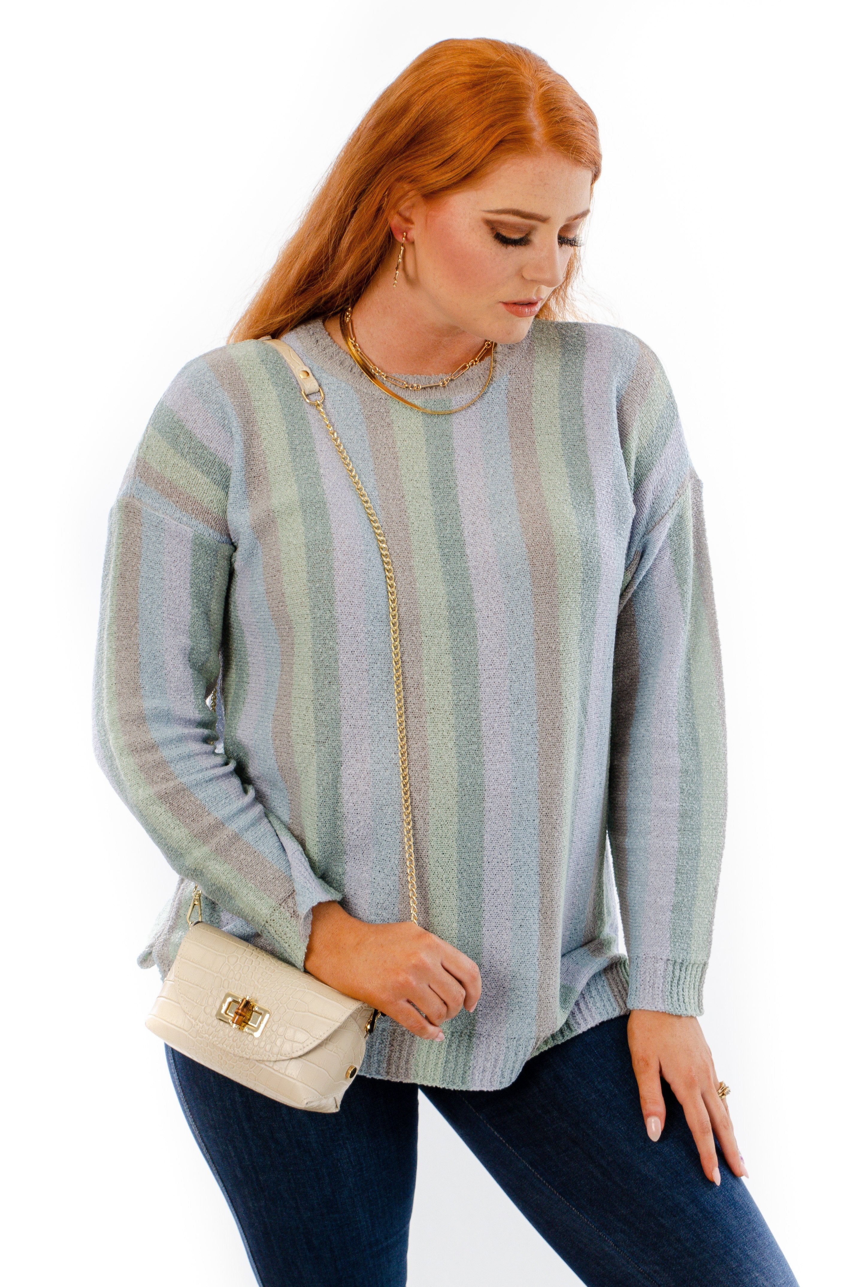 Cozy never looked so good! Our new Show Me Your Mumu True Blue Stripe Atlas Sweater features a loose-fitting silhouette, cozy crew neckline, and lightweight material several shades of blue and green. We love this sweater tucked into some trendy denim!