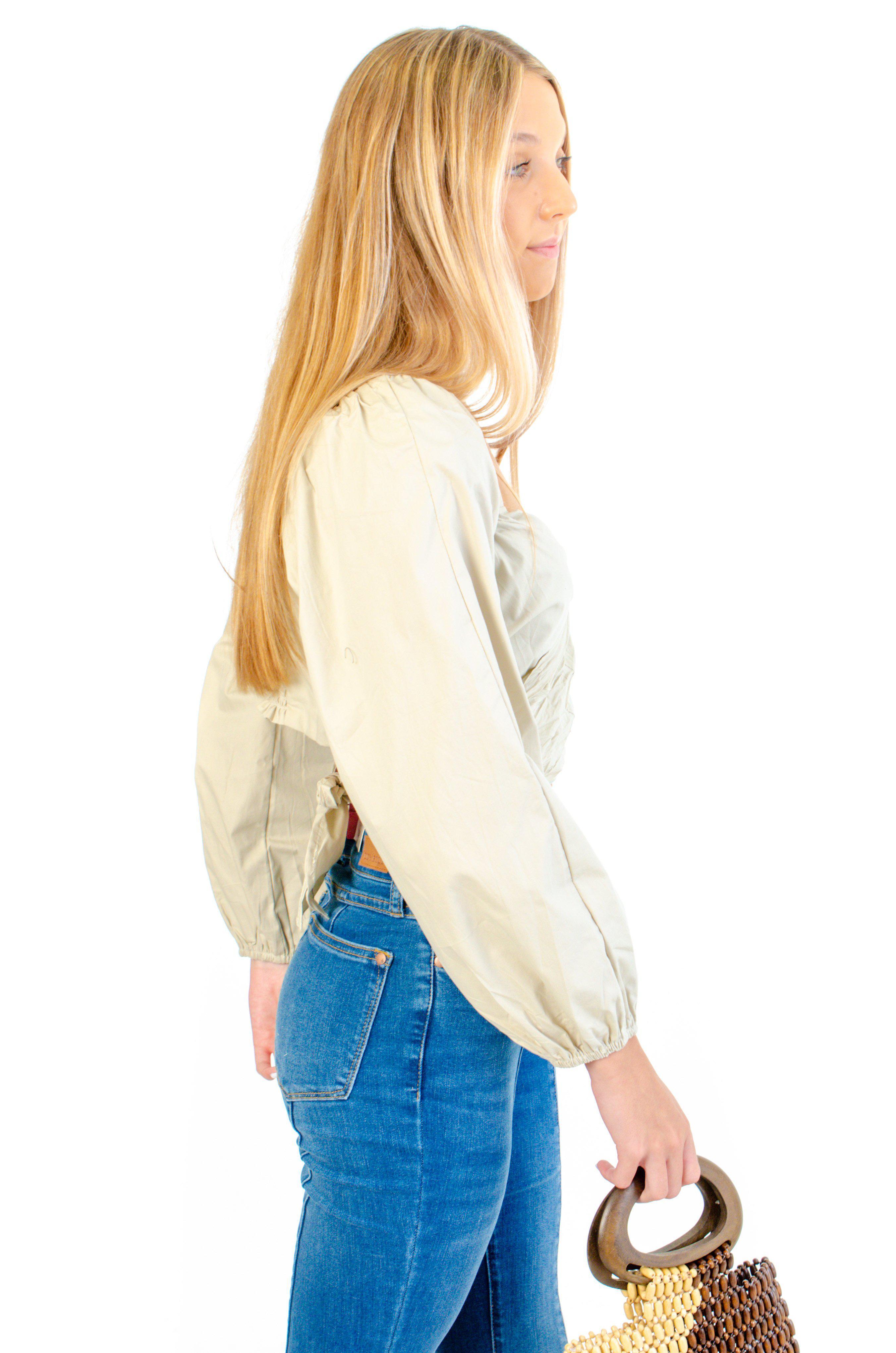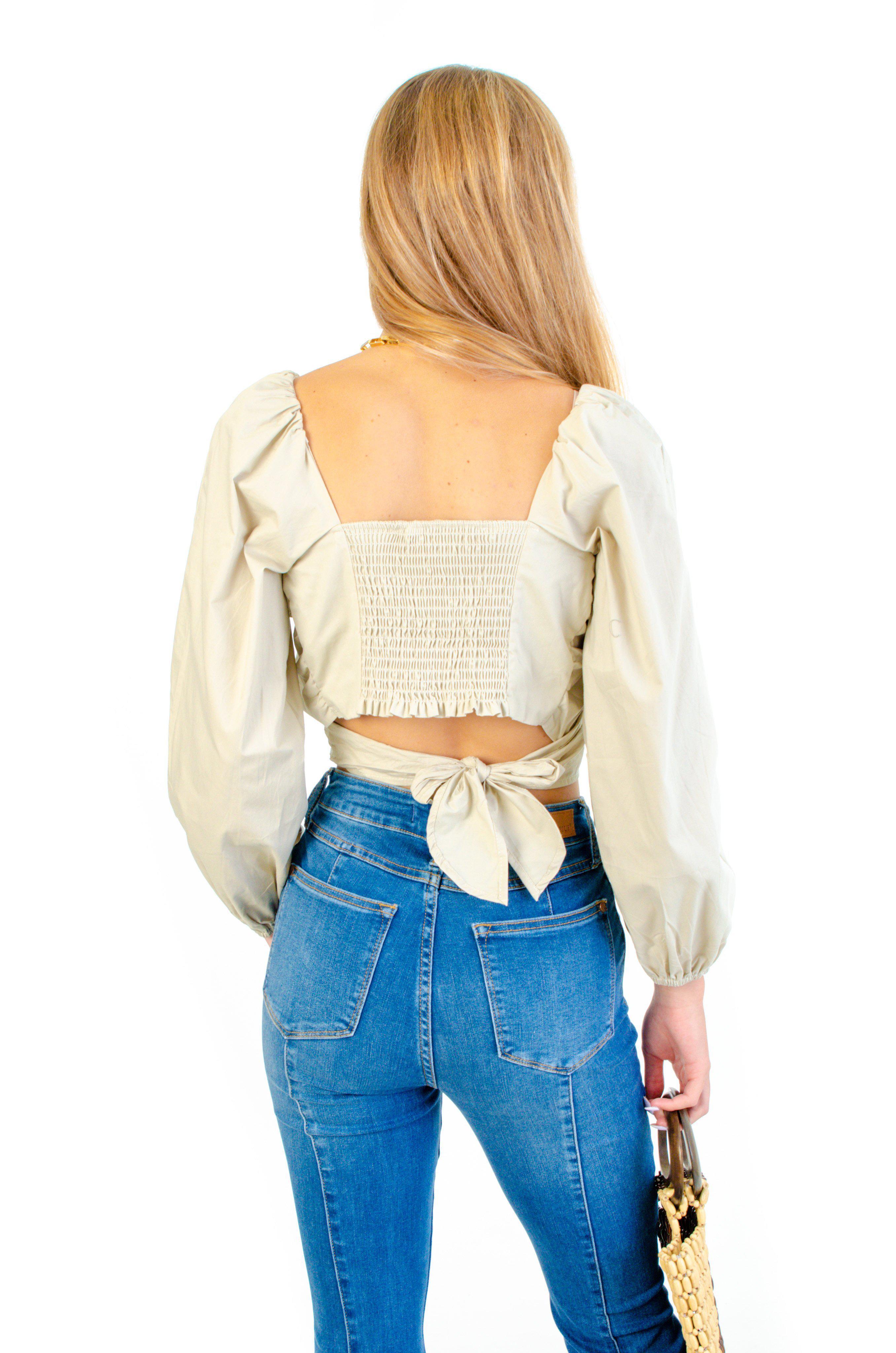 It's Vacation Time and you need to pack this top! Wild Mabel's Vacation Time Sage Top is a fun and flirty piece! This top features a sweetheart neckline and an adjustable wrap tie back top. Finished by a flattering smocked back detail. We love this top paired with flares for a 70s look, or white denim for a chic look!