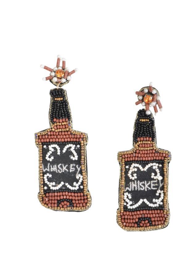 Get the party started with Wild Mabel's Whiskey Bottle Beaded Earrings! These earrings have beads and rhinestone that are sure to grab some attention. Featuring a post backing, these earrings are about 2" in length.